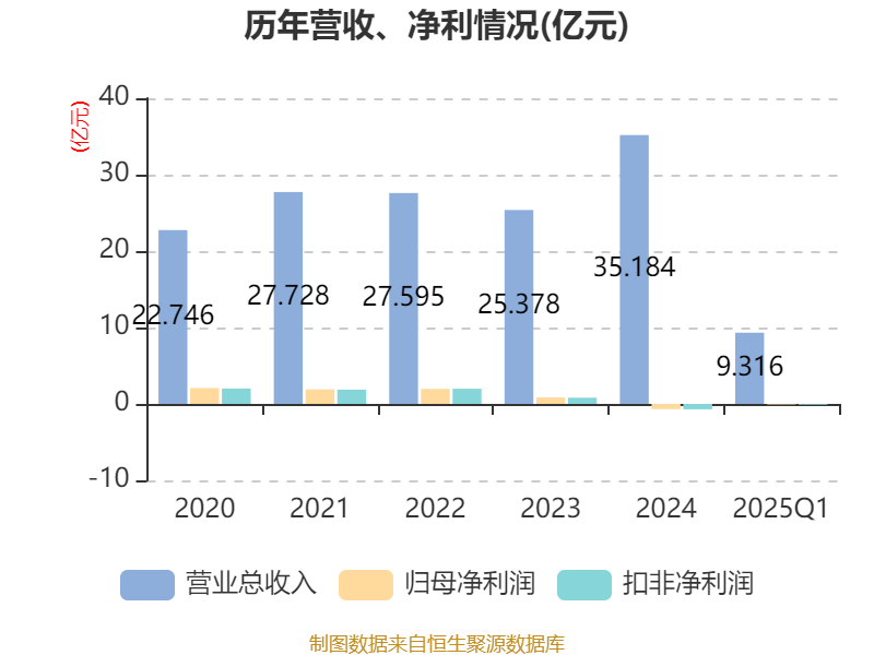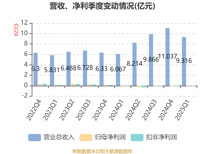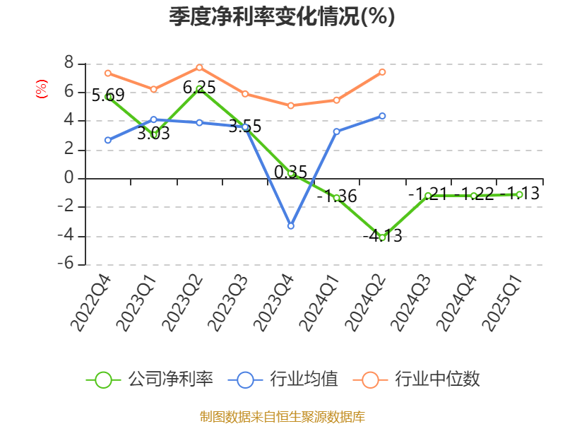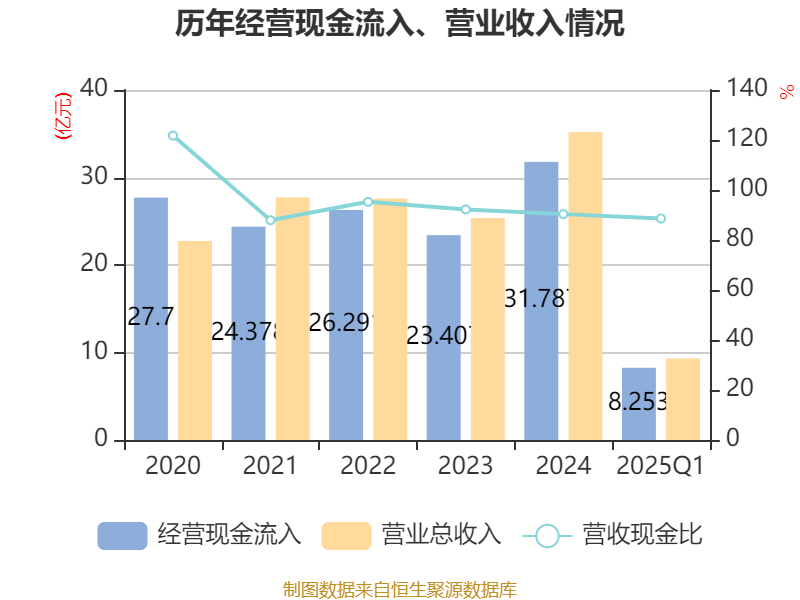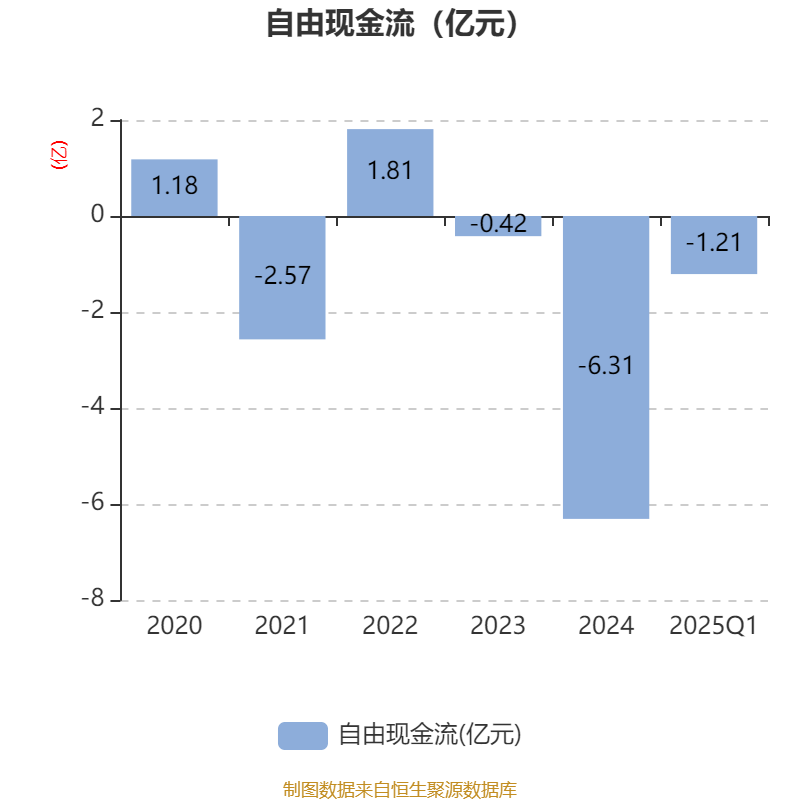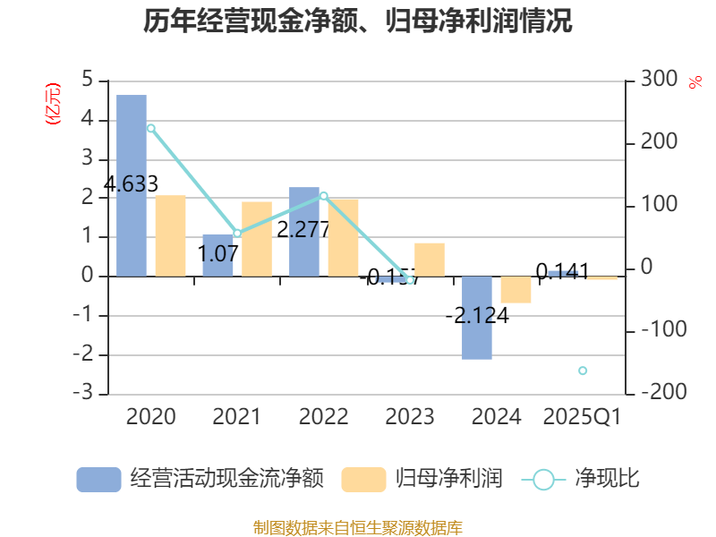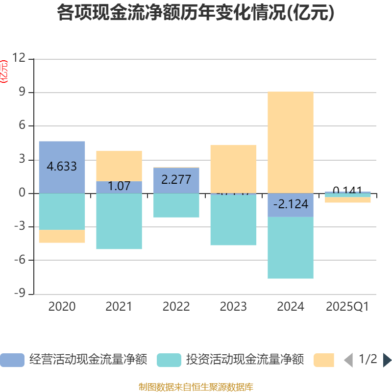 截至2025年一季度末,公司经营活动现金流净额为1407.84万元,同比增加1.36亿元;筹资活动现金流净额-4788.74万元,同比减少3.46亿元;投资活动现金流净额-3569.34万元,上年同期为-1.83亿元。