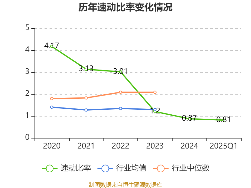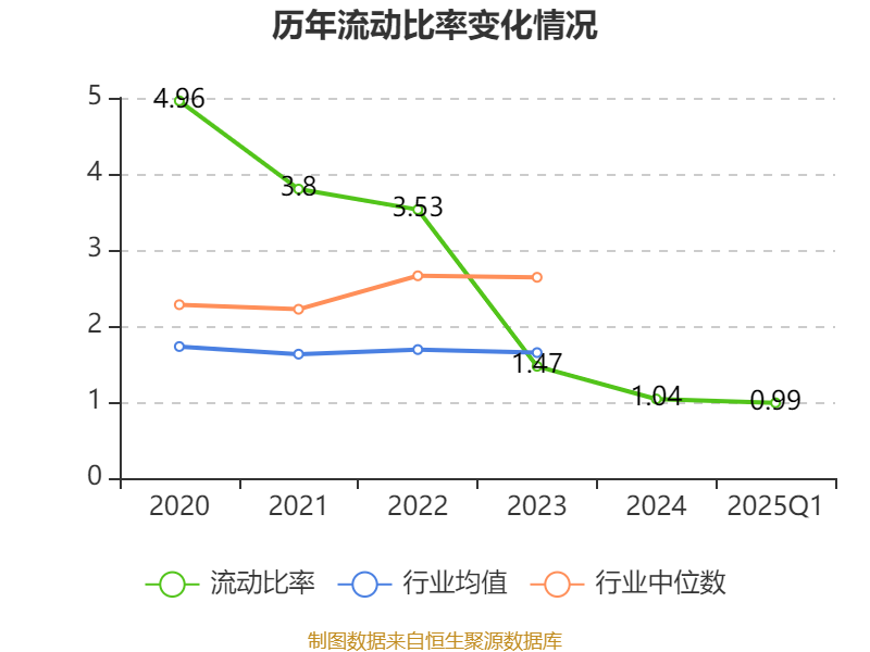 2025年第一季度,公司流动比率为0.99,速动比率为0.81。