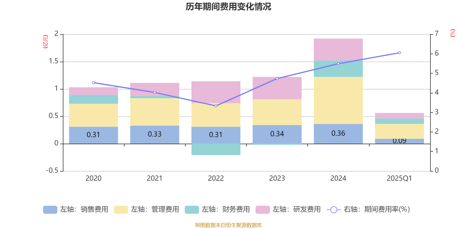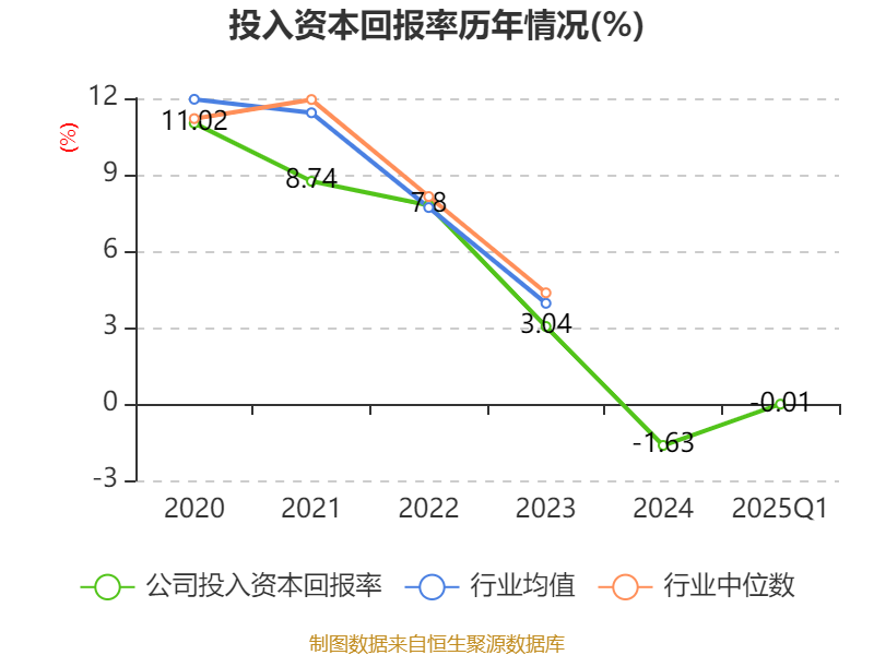 盈利能力方面, 2025年一季度公司加权平均净资产收益率为-0.35%,同比下降0.01个百分点。公司2025年第一季度投入资本回报率为-0.01%,较上年同期上升0.1个百分点。